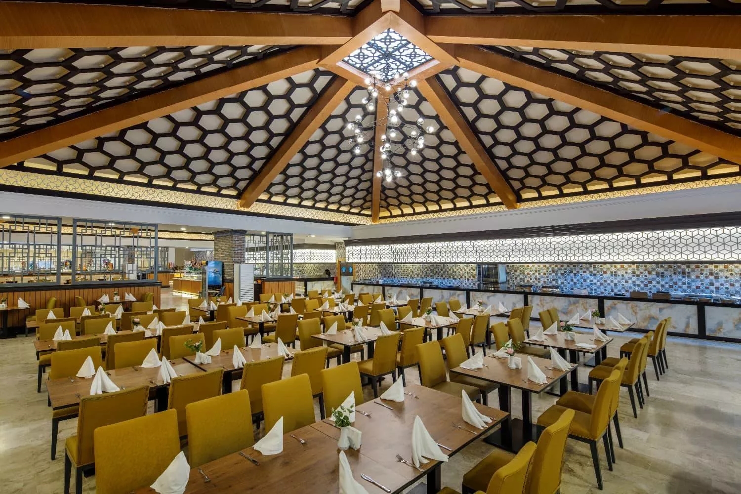 Açık büfe ve çocuk büfesi ile fark yaratacak menüleriyle misafirlerine farklı lezzetler sunmaktadır.